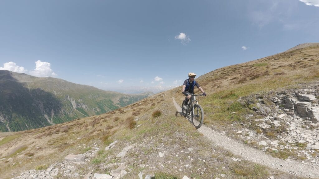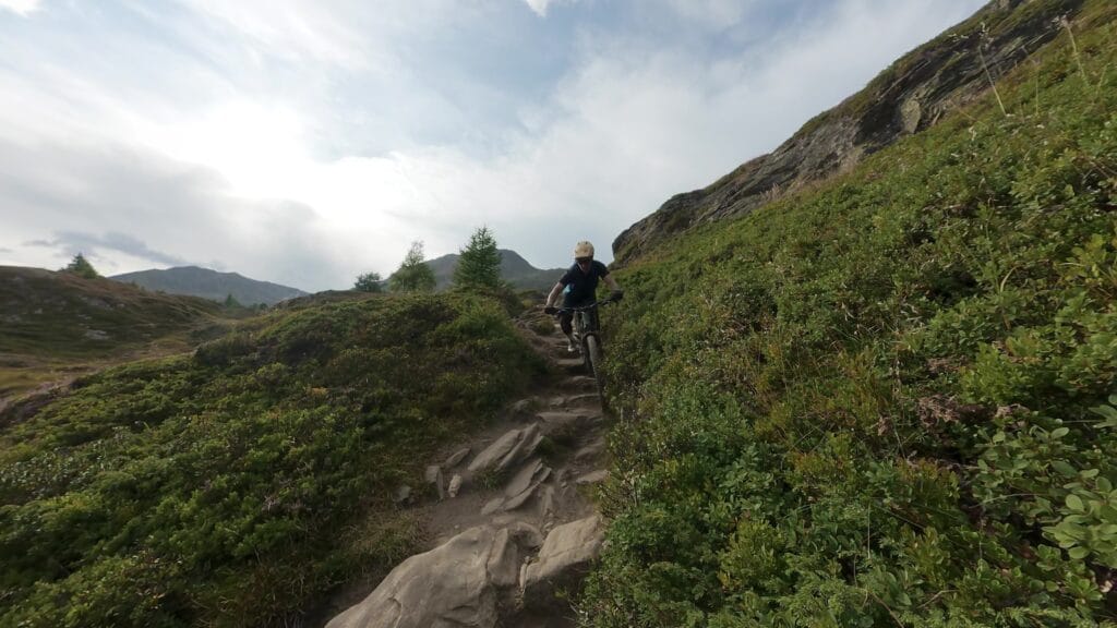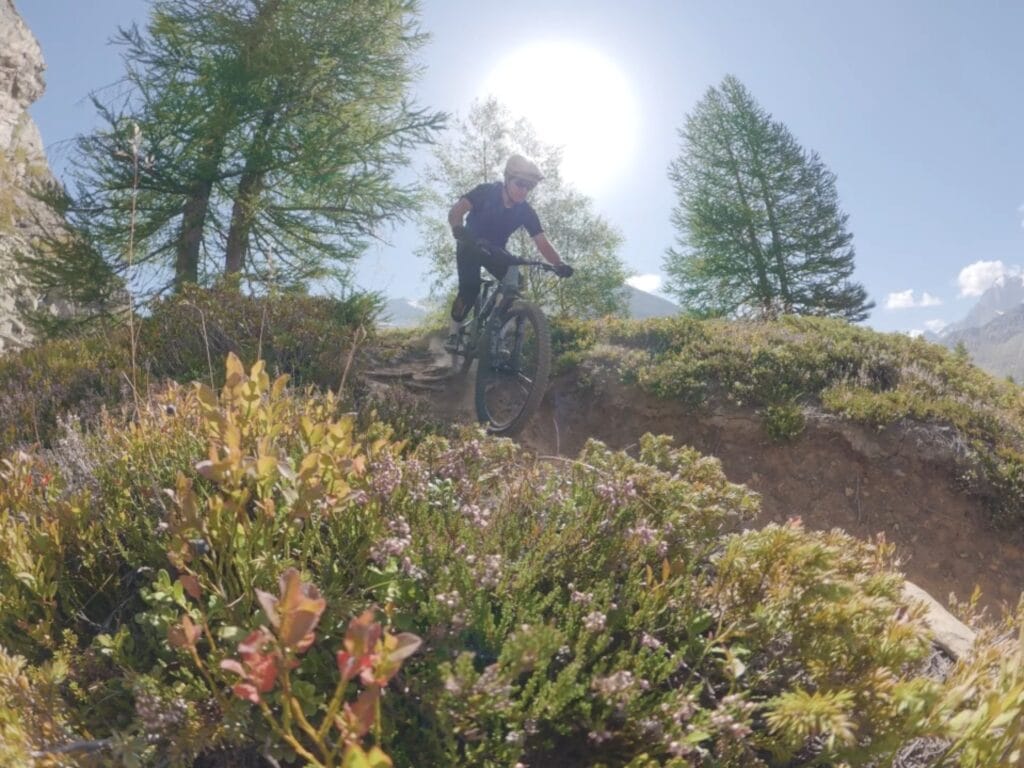Le possibilità sono davvero molteplici. Dai passi alpini sopra i 2.500 metri, fino a tracce scorrevoli che ricordano un moderno XC. Non ci sono strade bianche o jeepabili a rovinare l’atmosfera: qui è tutto singletrack. Con buona condizione fisica (o con l’aiuto di una e-bike) ci si può togliere soddisfazioni enormi, anche in alta quota.