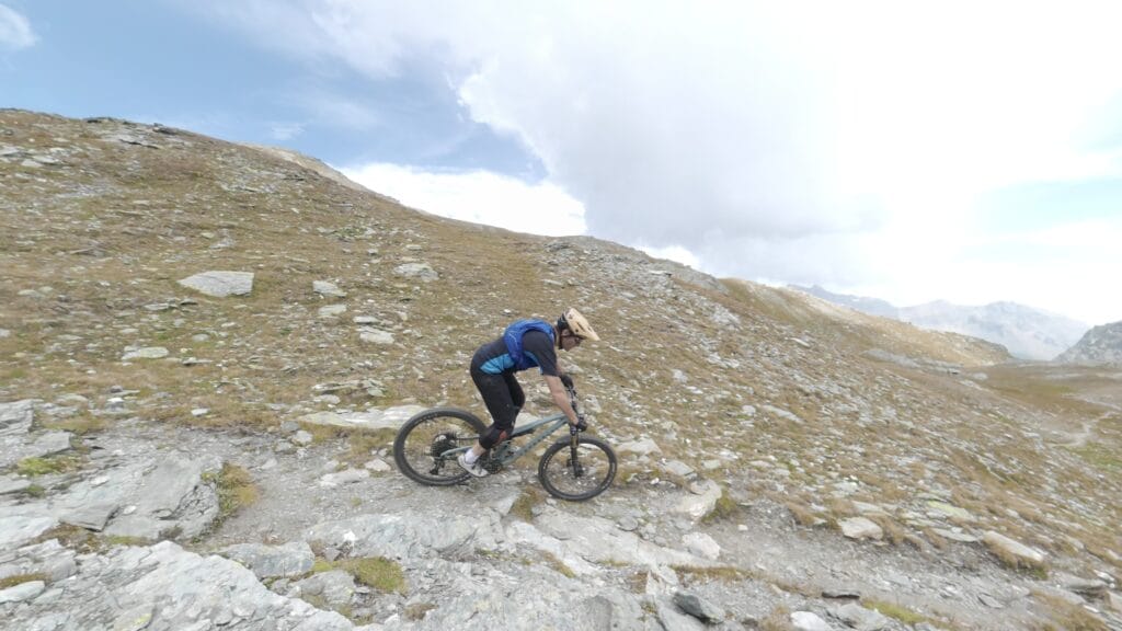 Da qui si continua in costa fino ai 2.600 metri del Sirwoltesattel, balcone naturale con vedute mozzafiato. La discesa è tecnica, impegnativa, in alcuni tratti da affrontare con prudenza o a piedi. Ma fino al passo, il percorso alterna salite dure e tratti pedalabili, con fondi compatti e panorami che ripagano di ogni sforzo.