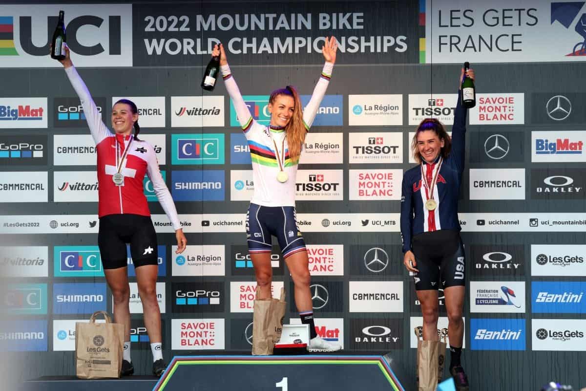 Pauline Ferrand Prevot va a dominare questo mondiale, il suo 4° nel Cross Country. Dietro di lei la campionessa olimpica Jolanda Neff con un distacco di 1’35” dalla francese. Il terzo gradino del podio è invece conquistato dalla statunitense Haley Batten.