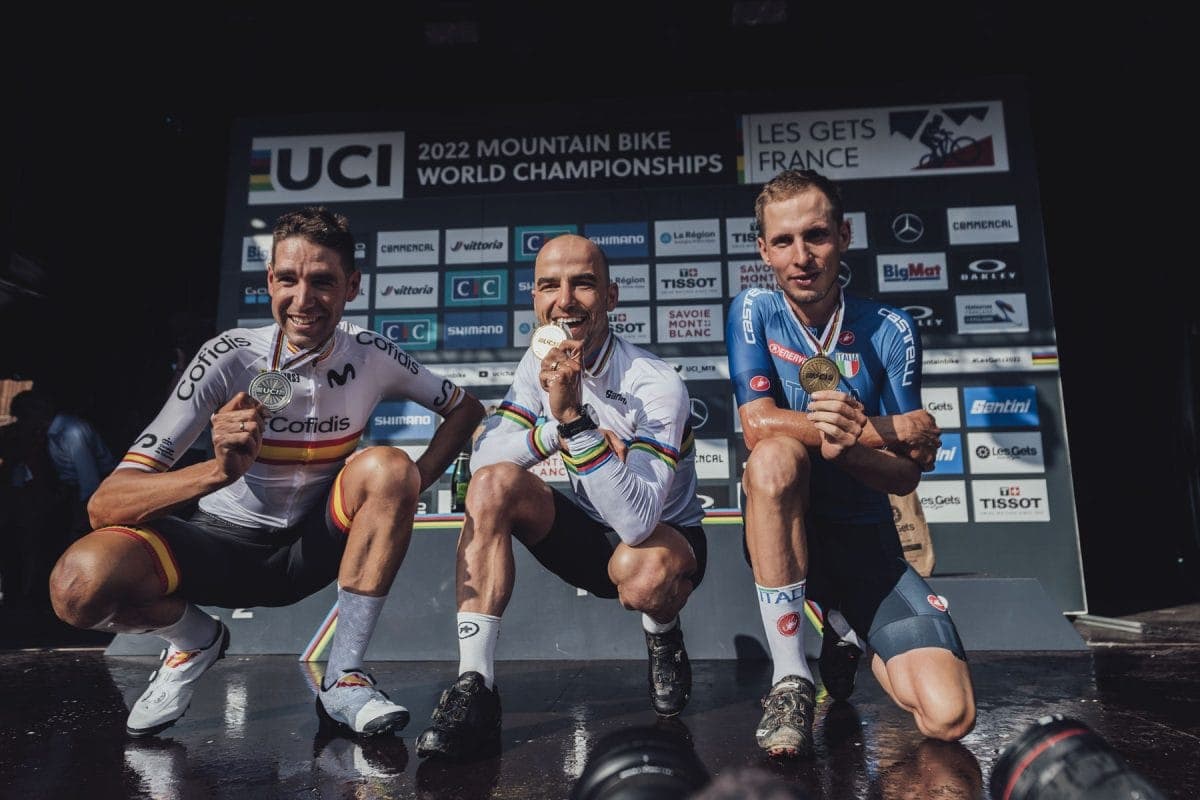 26-28 Agosto 2022 – Schurter forza in discesa e guadagna quei metri che gli consentono di vincere in un’ora e 21 minuti davanti a David Valero. Oggi Nino Schurter, all’età di 36 anni, ha vinto il suo 10° titolo di campione del mondo cross country, nessuno mai come lui. Strepitoso Luca Braidot che tiene a bada Pidcock, che precedentemente si era fermato ai box per una foratura, e conquista un fantastico bronzo.