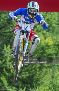 Podio Mondiali DH MTB 2005 Livigno (Photo credit should read GIUSEPPE CACACE/AFP via Getty Images)