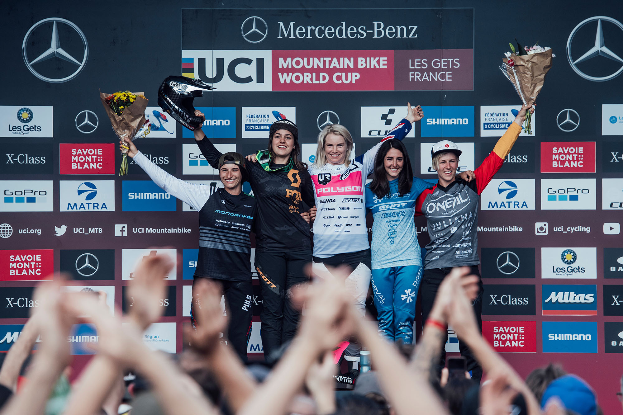 Tra le donne, fantastica vittoria di Tracey Hannah che finalmente porta a casa la sua prima vittoria nella generale di coppa dopo anni di piazzamenti. Dietro di lei Marine Cabirou e l’italiana Veronika Widmann.