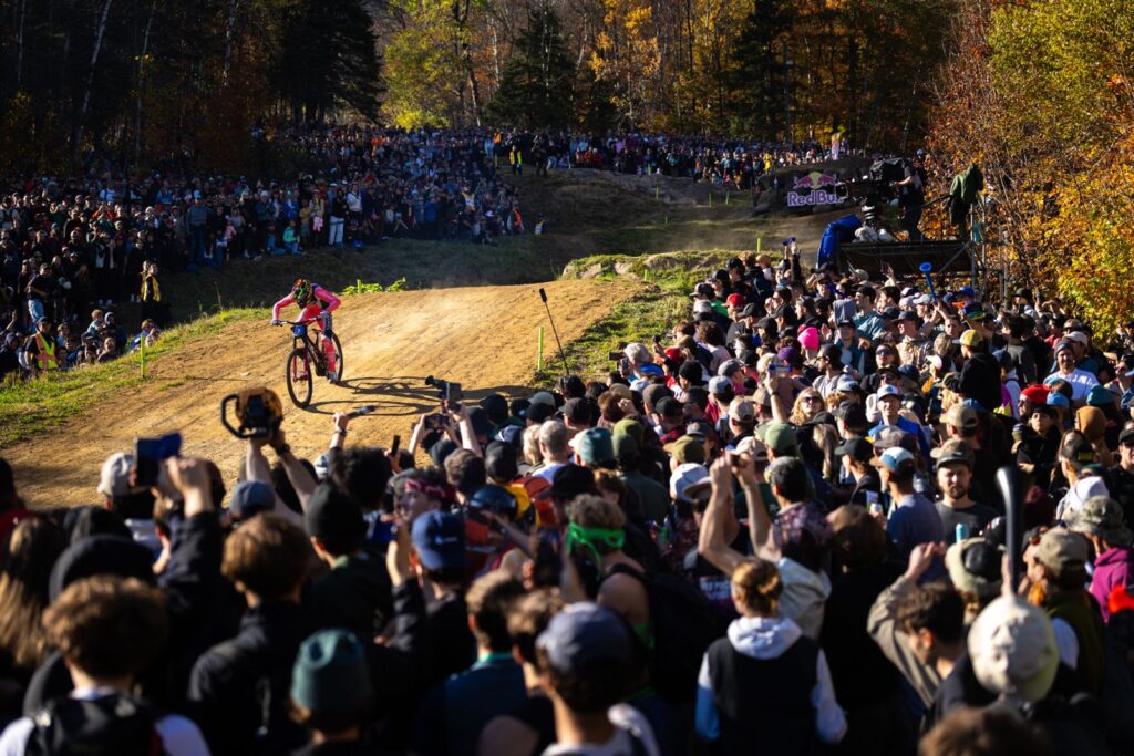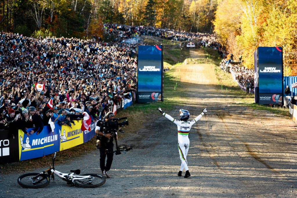 Tutta la pressione era sul giovane campione del mondo di discesa libera UCI, Goldstone, che è partito a razzo dal cancelletto di partenza sul suo tracciato di casa ed è stato in lizza fin dalle prime curve. Lottando tra gli alberi, Goldstone ha mantenuto la sua velocità con salti enormi, mentre triplicava sul difficile rock garden per mantenere la velocità. Goldstone ha dominato l’ultimo settore per chiudere due secondi più veloce di Kolb, diventando il più veloce e mandando in visibilio il pubblico di Mont-Sainte-Anne.