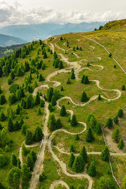 Con 18 trail distribuiti su più versanti, il Bike Park Plan de Corones offre un riding vario e progressivo: dalle linee più scorrevoli alle discese tecniche e impegnative.