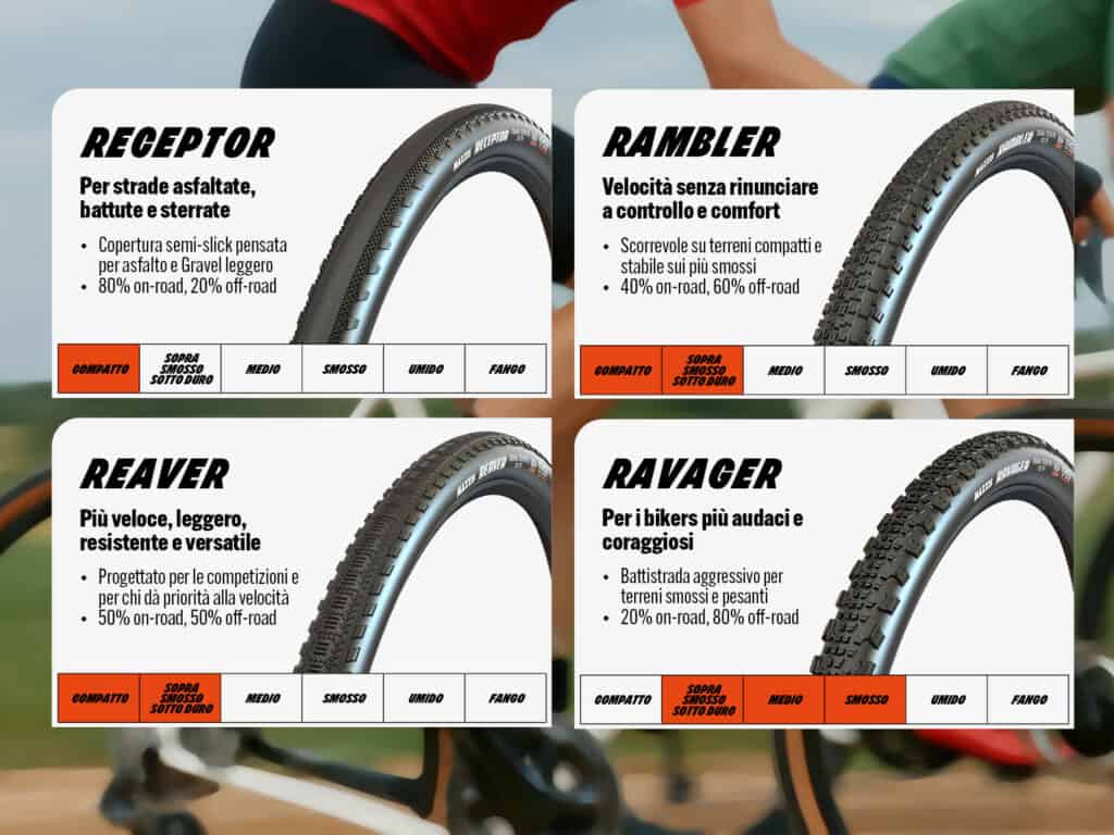 Con una linea completa specifica per il gravel, Maxxis offre un’ampia scelta di copertoni adatta a tutti i tipi di terreni.