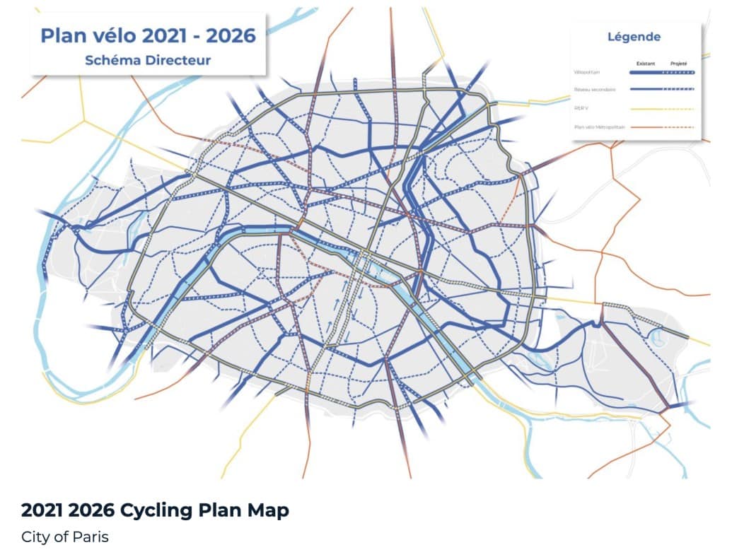 Grazie al Plan Velo: Act 2, che prevede di investire 250 milioni di euro nel periodo 2021-2026, Parigi vuole diventare “ciclabile al 100% entro il 2026”. Da qui ai prossimi 5 anni la capitale francese amplierà i suoi percorsi ciclabili e aggiungerà 180 chilometri di nuove piste permanenti. La Francia ha presentato un programma a lungo termine (dal 2023 al 2027) con il quale intende espandere l’uso della bicicletta, moltiplicare la quantità di infrastrutture dedicate alla bicicletta e aumentare il peso delle l’industria della bicicletta nel tuo paese. In breve, si prevede di stanziare 2 miliardi di euro per azioni relative a questo programma fino al 2027.