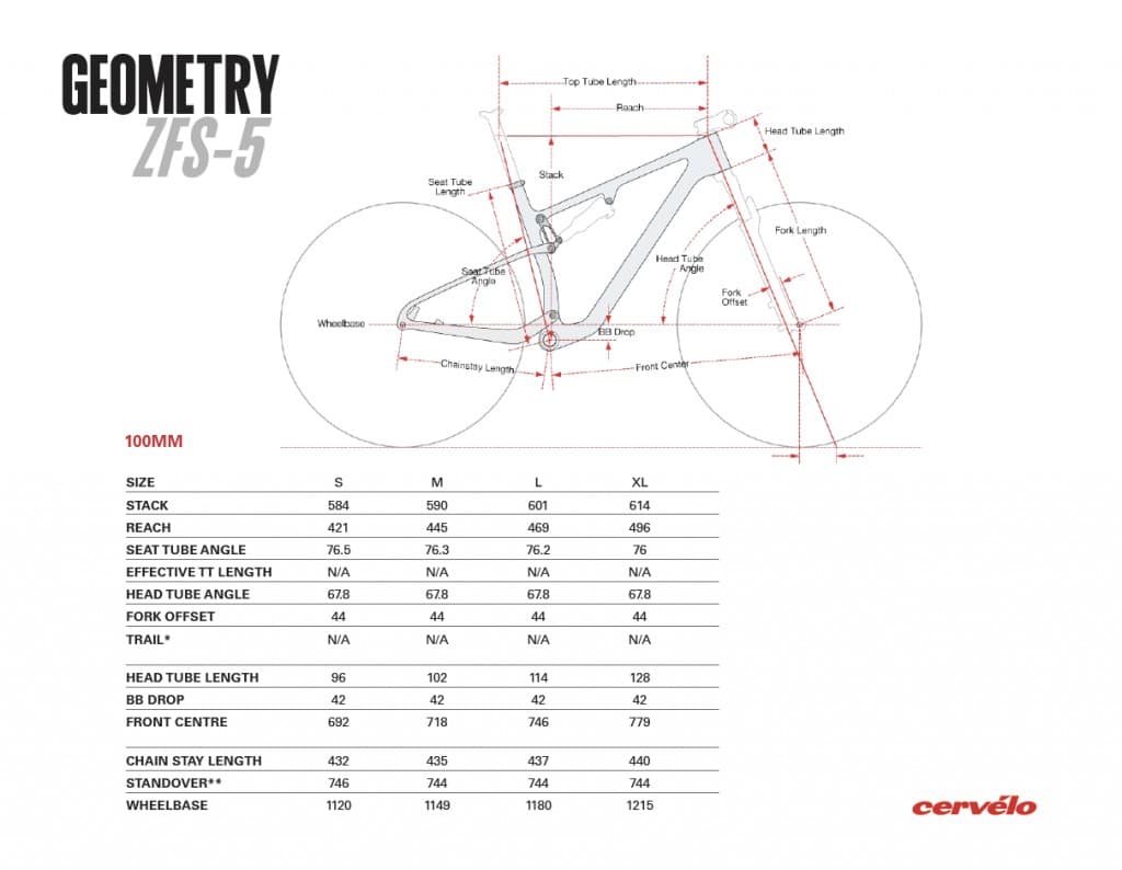 Verrà prodotta in versione 100mm e 120mm, più sotto puoi trovare le geometrie. L’angolo di sterzo va da 66,7° a 67,8°, conferendo alla bici una maneggevolezza focalizzata su trail impegnativi: una cross country moderna. Ogni taglia ha la propria lunghezza del fodero orizzontale, che va da 432 mm sulla S a 440 mm sulla XL.