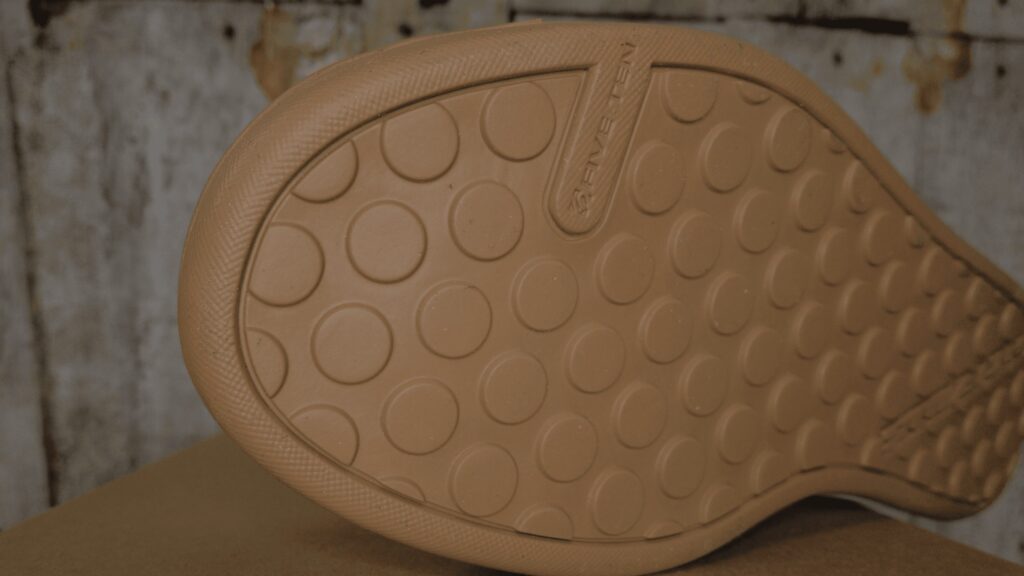 La suola Dotty, realizzata con la famosa mescola Stealth, non smette mai di sorprendere in quanto ad aderenza. Son da sempre un fermo sostenitore dei pedali a sganci, ma l’aderenza di questa suola non mi fa rimpiangere i mie amati SPD. Per anni i free climber hanno lodato le qualità e l’aderenza di questa suola, che si conferma la migliore anche in ambito Mountain bike, riuscendo a trasmettere quella sicurezza necessaria per affrontare i passaggi più sconnessi e a condurre al meglio la bici anche nelle curve più veloci.