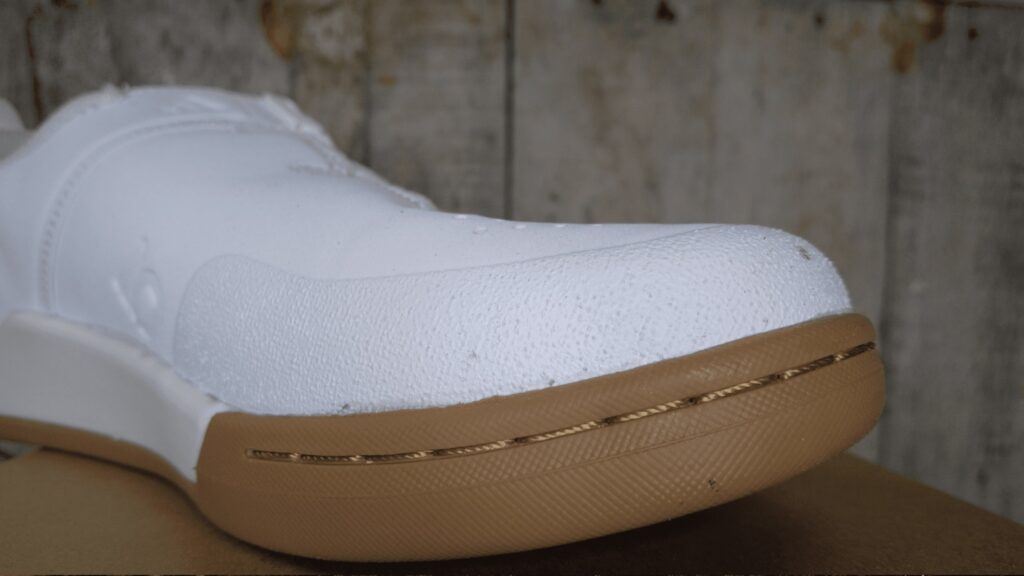 Chi sceglie questa scarpa non lo fa certamente per le sue doti di trasmissione della forza sui pedali, quindi il nostro metro di giudizio deve conformarsi con gli standard di questa categoria. la scarpa mi è sembrata un po’ più morbida rispetto ad altre che ho avuto modo di testare. Molto confortevole nella camminata da stabilità sui pedali grazie soprattutto alla suola di cui abbiamo già parlato. Non è fatta per grandi pedalate, per cui le flessioni in spinta fanno parte del gioco. Bene l’inserto in punta per proteggere i piede dagli urti e l’intersuola in EVA che aumenta il confort generale.