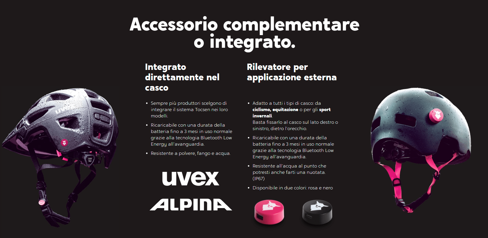 Se girate spesso da soli, Tocsen potrebbe essere una sicurezza in più. Alpina e Uvex hanno deciso di integrare il dispositivo in alcuni loro dei loro modelli più rappresentativi, questo a beneficio della serietà e affidabilità del progetto.