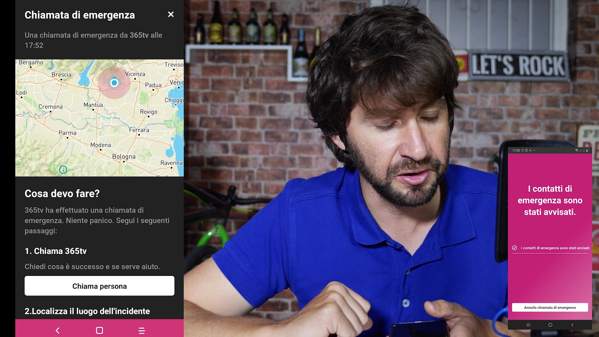 L’utente può anche chiamare il numero d’emergenza unico europeo (NUE) 112 tramite un tasto mentre chi riceve la segnalazione di caduta, famigliare o membro della community, può recarsi velocemente sul luogo dell’infortunio, chiamare il biker in difficoltà o scegliere di chiamare direttamente i soccorsi se ha la certezza di un problema grave, sapendo chiaramente la posizione del biker.