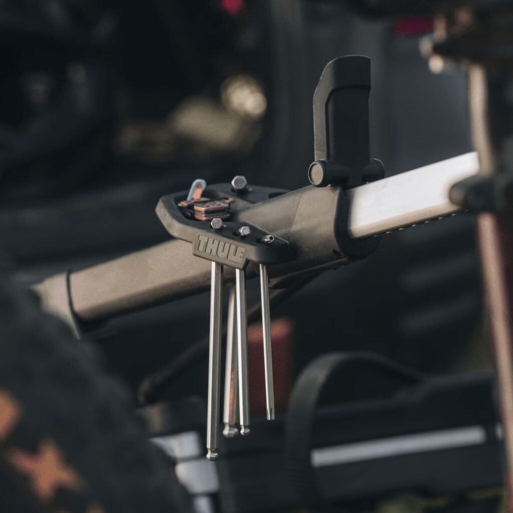 Thule Epos Bike Repair Holder, per regolare/riparare le tua bici senza fermarti. Realizzato per regolare e riparare la bici in modo facile: si fissa a Thule Epos e può restare montato. Piattaforma magnetica per mantenere solidi gli attrezzi. Non disponibile nella versione standard. Proposto a 62€.