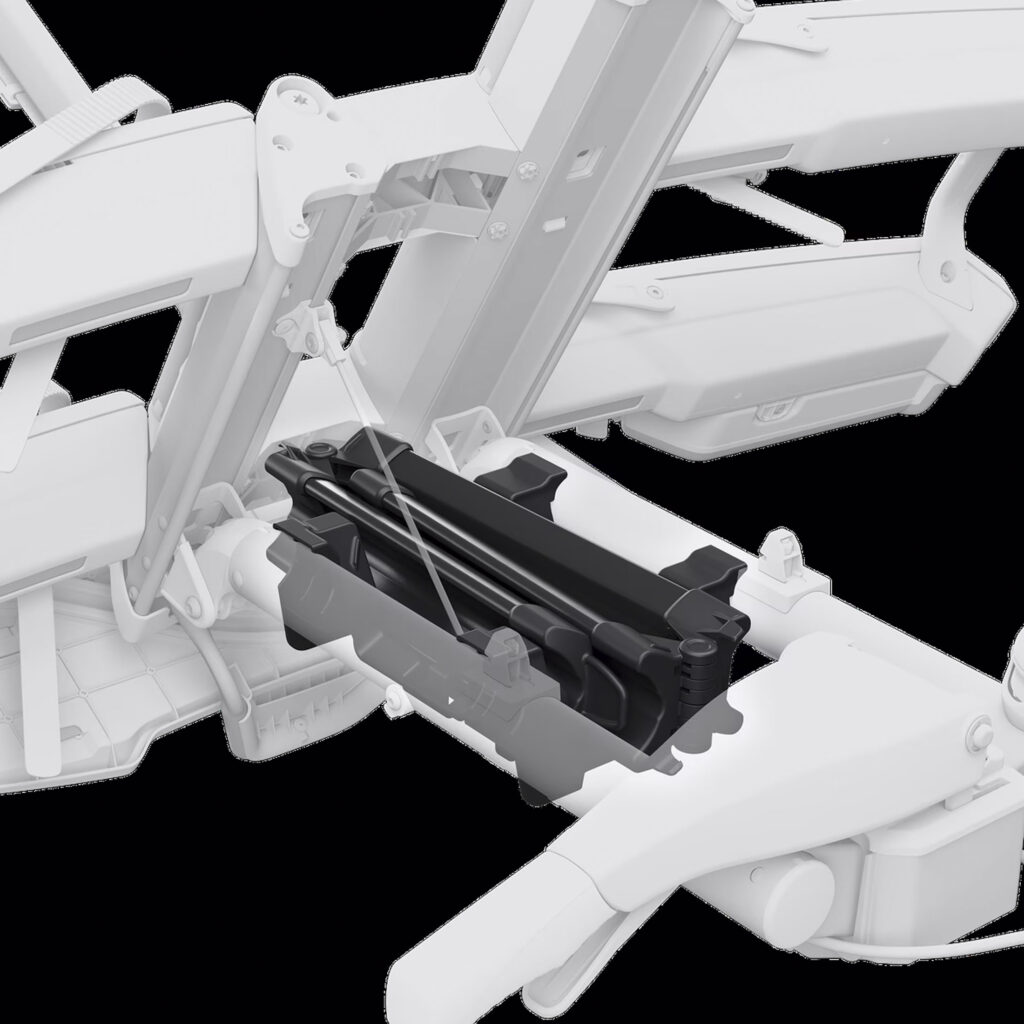 Grazie a un supporto telescopico girevole e a cinghie con cricchetto rinforzate, possiamo trovare il modo di fissare qualsiasi tipo di bici: dalle gravel alle e-bike. Il portabici a 2 posti rimane 22cm più corto del suo fratello a 3 posti, fermo restando che la distanza delle bici è la medesima (25cm).